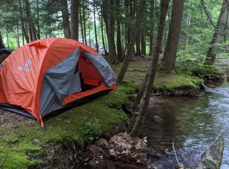 The park offers 50 wooded campsites, fishing in the stocked brown trout stream, hunting, cross-country skiing, snowmobiling, and family-friendly recreation amid forested hills near Blain off Pennsylvania Route 274.