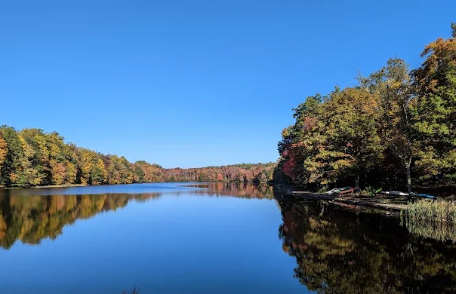 It features Hopewell Lake, a 68-acre warmwater lake, and Scotts Run Lake, a 22-acre coldwater lake where the state record smallmouth bass was caught, plus nearly 40 miles of hiking, equestrian, and mountain biking trails amid wetlands, fields, and diverse forests.