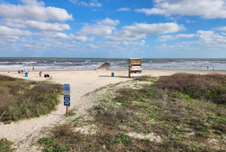 The beach is part of the wider Galveston area, which combines natural beauty with historic charm, including the famous Galveston Seawall Urban Park, which stretches over 10 miles offering walking and biking paths alongside the beach. Galveston beaches are well equipped with amenities like restrooms, picnic areas, and lifeguards, making them attractive for families and tourists.