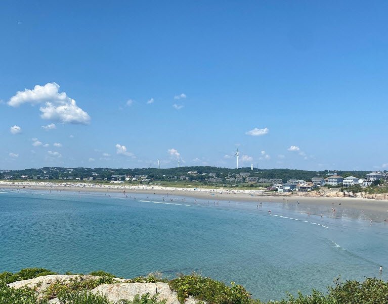 Good Harbor Beach in Gloucester, Massachusetts, is a beautiful public beach famous for its soft white sand, clear Atlantic waters, and scenic views of Salt Island.