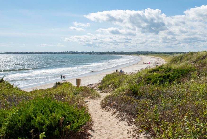 Gooseberry Beach in Rhode Island is a small, family-friendly beach located along Ocean Avenue in Newport, situated in a quiet cove that offers calm waters ideal for swimming and relaxation.