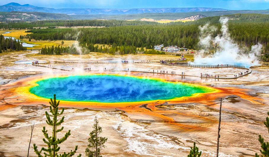 Visitors usually spend a few hours to a full day exploring Grand Prismatic Spring.