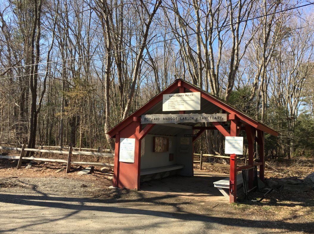 The 295-acre sanctuary features about seven miles of trails through diverse ecosystems including hardwood forests, old fields, lakes, streams, and vernal ponds. The property preserves remnants of early New England life such as stone walkways, an old apple orchard, and historic homestead buildings.