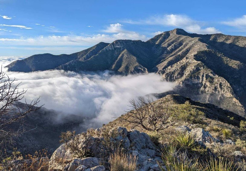 It is located in the Guadalupe Mountains in Culberson County, about 100 miles east of El Paso, within Guadalupe Mountains National Park. The peak is part of a rugged mountain range that rises dramatically above the surrounding Chihuahuan Desert. The summit features a distinctive metal pyramid marker, and the hike to the top is challenging but offers spectacular panoramic views of the desert, surrounding mountains, and nearby formations like El Capitan.
