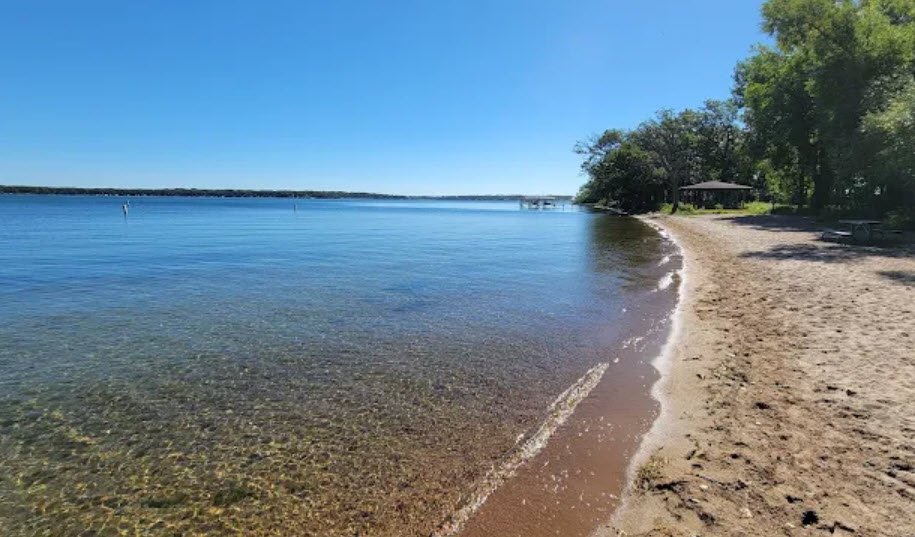 Home to the state's largest Civilian Conservation Corps-built lodge seating 140 for events, plus historic districts on the National Register, it offers a shaded campground with 112 sites (many electric), modern showers, playground, swimming beach, boating, and prime fishing for walleye, northern pike, bass, perch, bluegill, crappie, catfish, and bullheads.