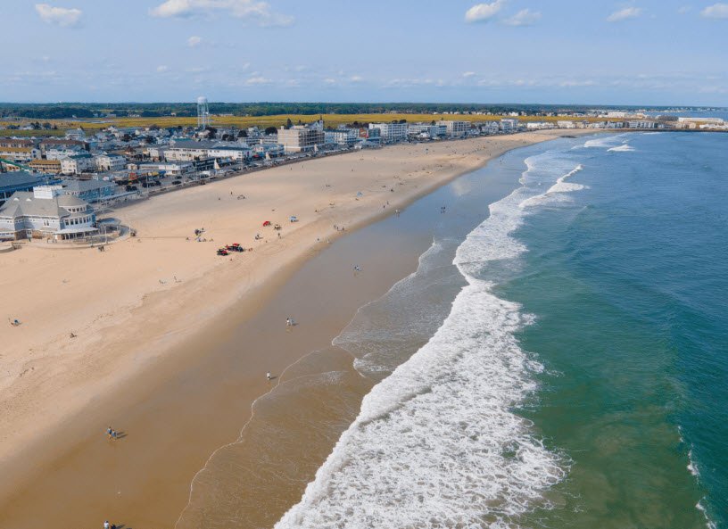 Its history dates back to 1638 as a barrier island used for fishing and haying, evolving into a popular vacation spot since the late 1800s with casinos, hotels, and a trolley line boosting development.