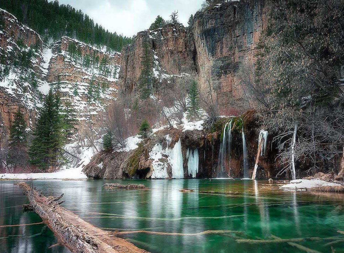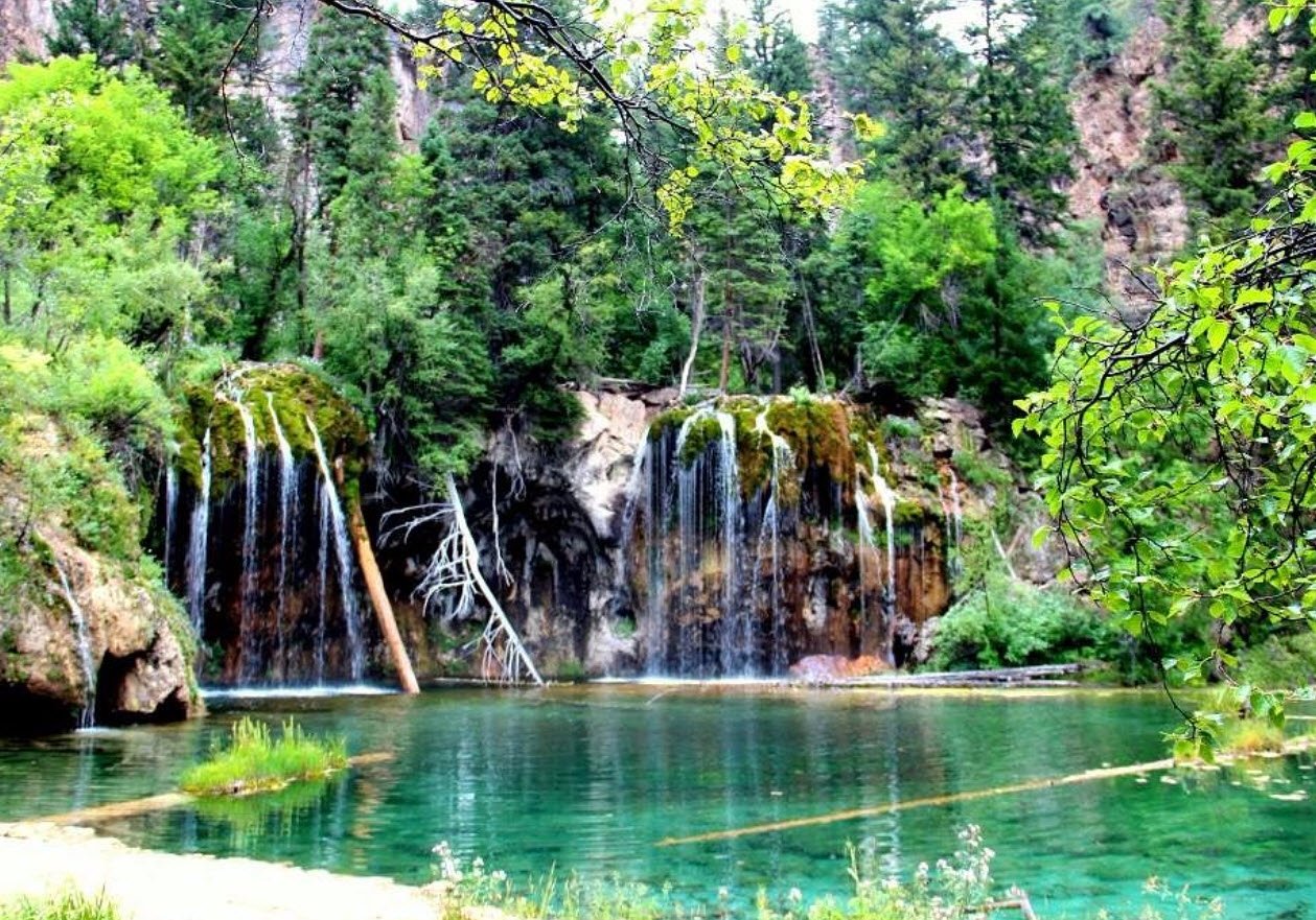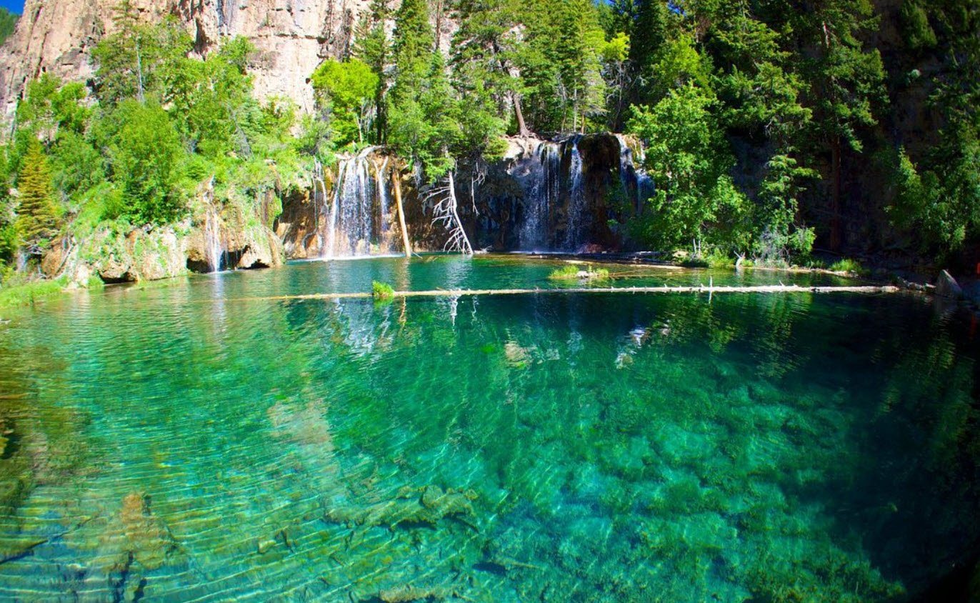 Hanging Lake in Colorado is a stunning turquoise lake nestled in Glenwood Canyon, about 7 miles east of Glenwood Springs. Known for its unique formation, the lake sits in a bowl-like basin hanging on the cliffs, created by mineral travertine deposits from natural springs.