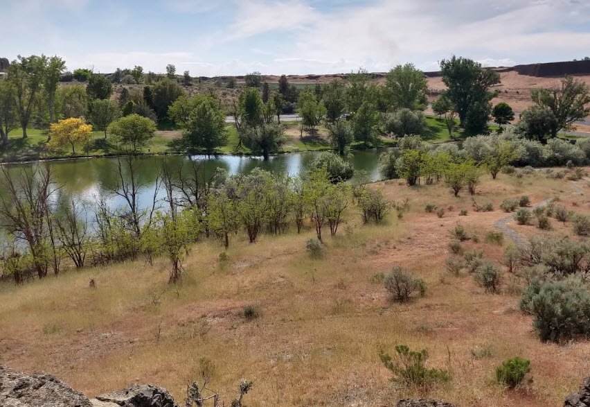 Hat Rock State Park lies on the south shore of Lake Wallula, a Columbia River reservoir behind McNary Dam, nine miles east of Umatilla off U.S. Highway 730 in Hermiston, Oregon.