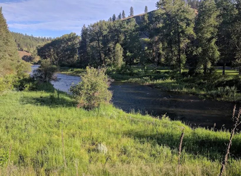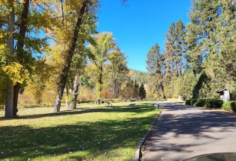 Hilgard Junction State Park covers 232 acres along the Grande Ronde River next to Interstate 84 at its Highway 244 junction near La Grande in Union County, Oregon, offering shaded camping amid cottonwood and ponderosa pine forests.