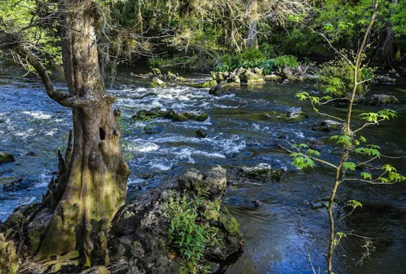 Visitors hike over seven miles of trails including the Rapids Trail to scenic overlooks, canoe or kayak the paddling trail spotting limpkins and herons, fish for bass and bream, camp in shaded sites, picnic under historic oaks, bike paths, swim in the pool, and explore Fort Foster Historic Site within the park boundaries open daily from 8 a.m. to sunset.