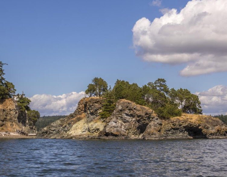 Situated near Oak Harbor with coordinates around 48.4°N, 122.57°W, it offers five mooring buoys primarily on the northern side, exceptional birdwatching including heron nesting areas on the southwest end, and dramatic cliffs that challenge inland access while preserving its wild, undeveloped character.
