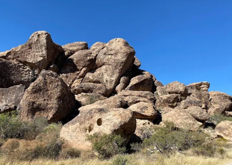 Hueco Tanks State Park & Historic Site spans 860 acres of dramatic syenite boulder mountains in El Paso County, Texas, about 32 miles northeast of El Paso via U.S. Route 62, named for the Spanish word "hueco" meaning hollows that trap rainwater in natural basins, sustaining life for over 10,000 years.