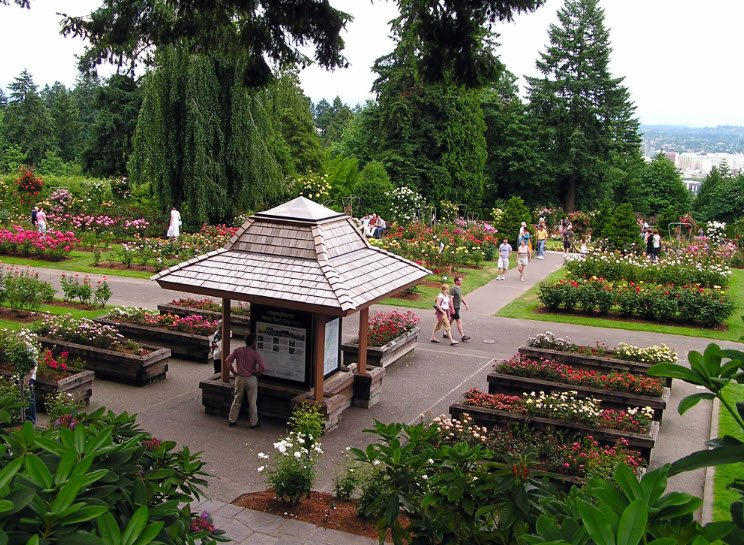 Designed by landscape architect Florence Holmes Gerke, the garden includes notable areas like the Royal Rosarian Garden and the Shakespeare Garden, and it offers stunning views of downtown Portland and nearby mountains.