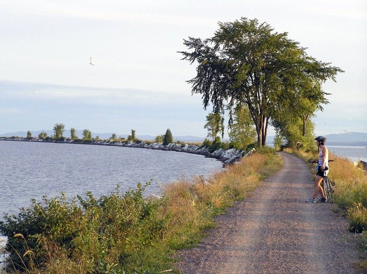 The Island Line Rail Trail in Vermont is a scenic 13.4-mile trail that runs along Lake Champlain, connecting Burlington and South Hero.