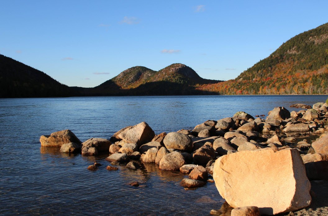 Covering 187 acres and reaching depths of up to 150 feet, it is the park's second-largest and deepest lake, known for its exceptionally clear water and scenic surroundings. The pond is framed by steep mountains, including Penobscot and Pemetic, with the distinctive twin peaks called The Bubbles rising nearby.