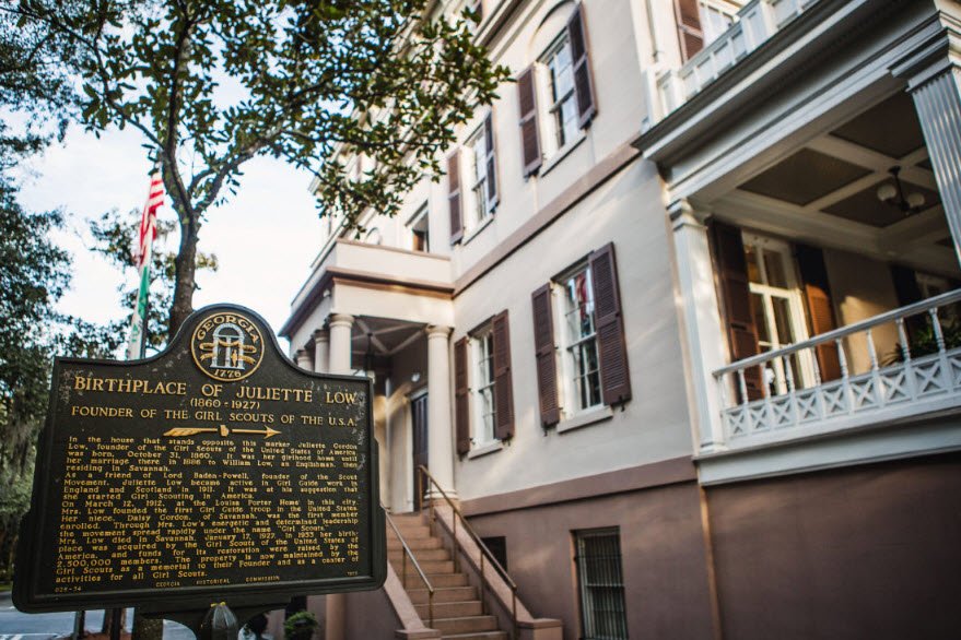 Part of the National Historic Landmark Juliette Gordon Low Historic District, it offers guided tours interpreting Low's life, the Girl Scouts' origins from her 1912 phone call, and 19th-century Savannah social history.