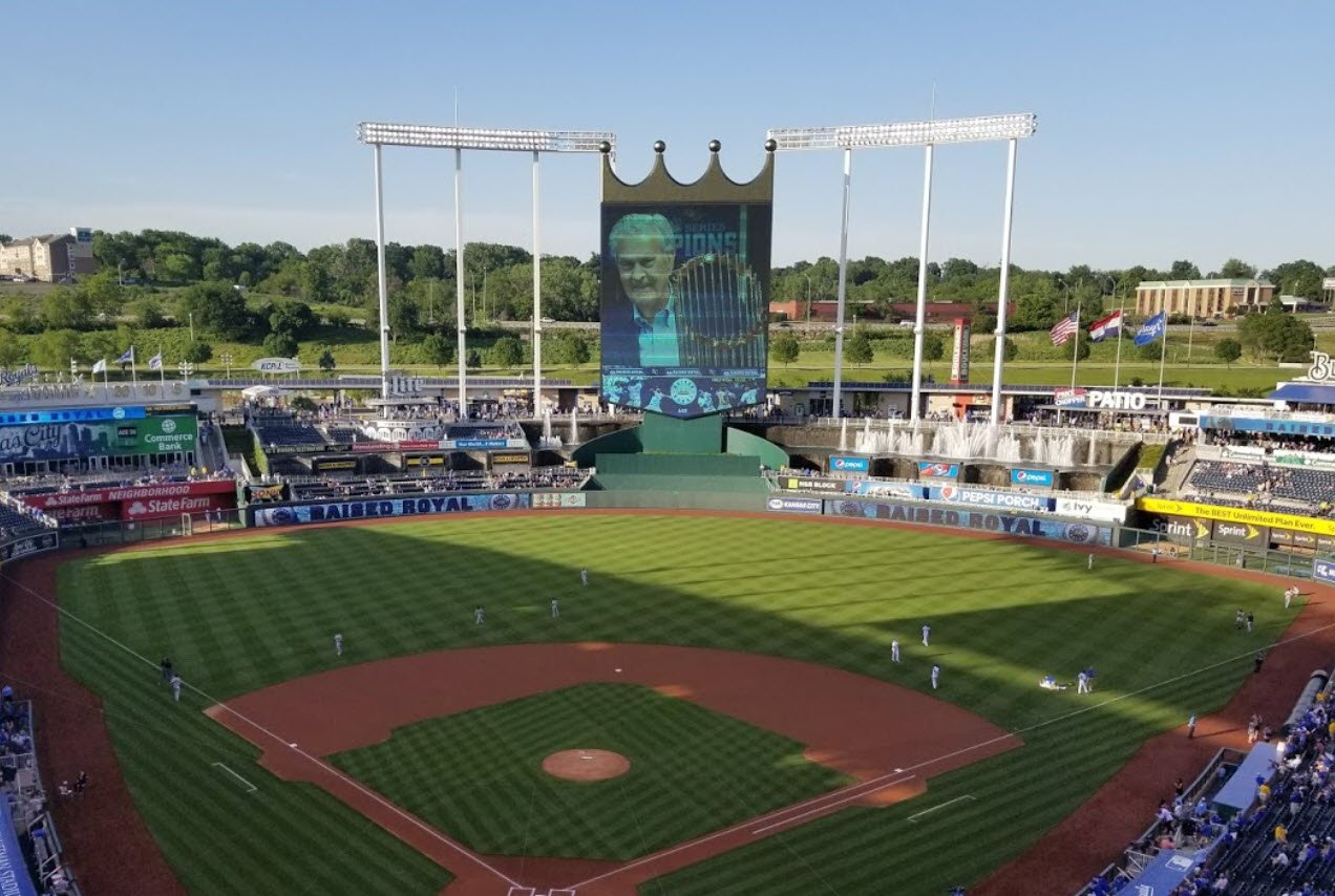 It is one of Major League Baseball's most picturesque ballparks, known for its baseball-only design during a time when multi-purpose stadiums were common. The stadium has a seating capacity of about 37,900 and features a distinctive 322-foot wide water fountain display beyond the outfield fence, representing Kansas City's nickname as the "City of Fountains."