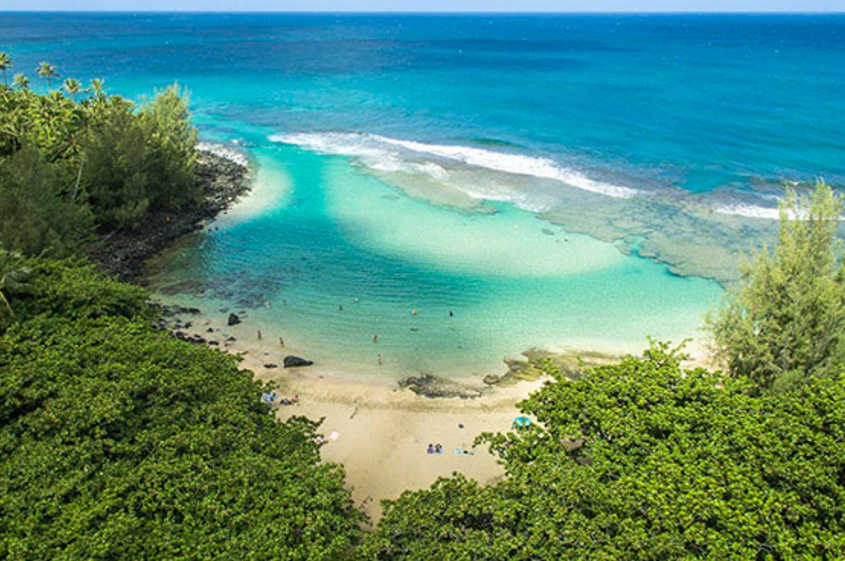 Keʻe Beach is located at the northernmost point of Kauai in Haʻena State Park and is famed for its calm, reef-protected lagoon that creates an ideal environment for snorkeling and swimming, especially during summer.