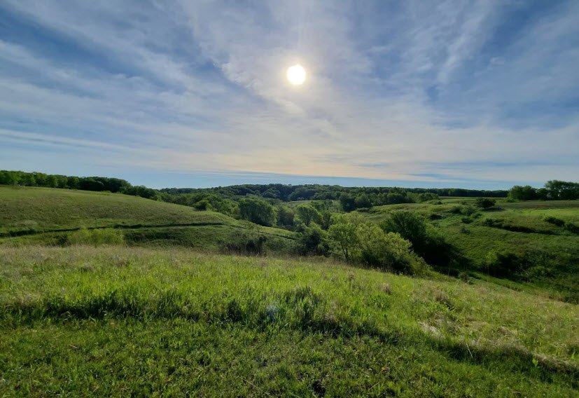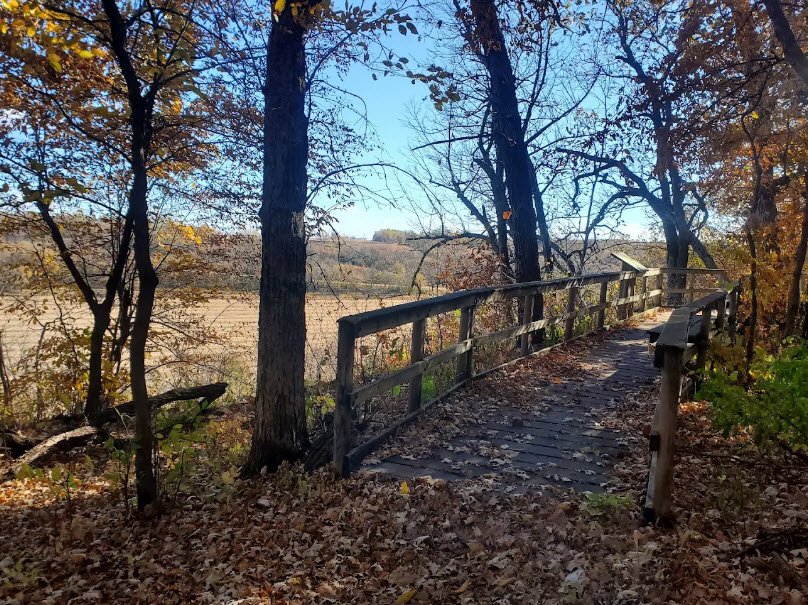 Authorized in 1945, it features oak savannas, prairie grasslands, fens with rare wildflowers, and river bluffs up to 150 feet high, offering five miles of hiking trails like the Meadow Trail Loop with footbridges, spring wildflowers, fall colors, and overlooks of the prairie and U-shaped creek valleys.