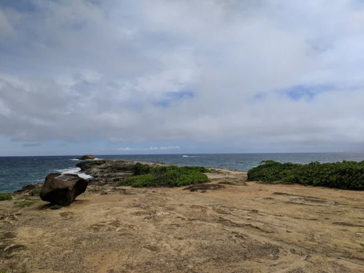 Lāʻie Point State Wayside is a small, scenic lookout on Oʻahu's northeast coast near Lāʻie, consisting of two parcels flanking a residential dead-end street with no facilities and very limited parking.