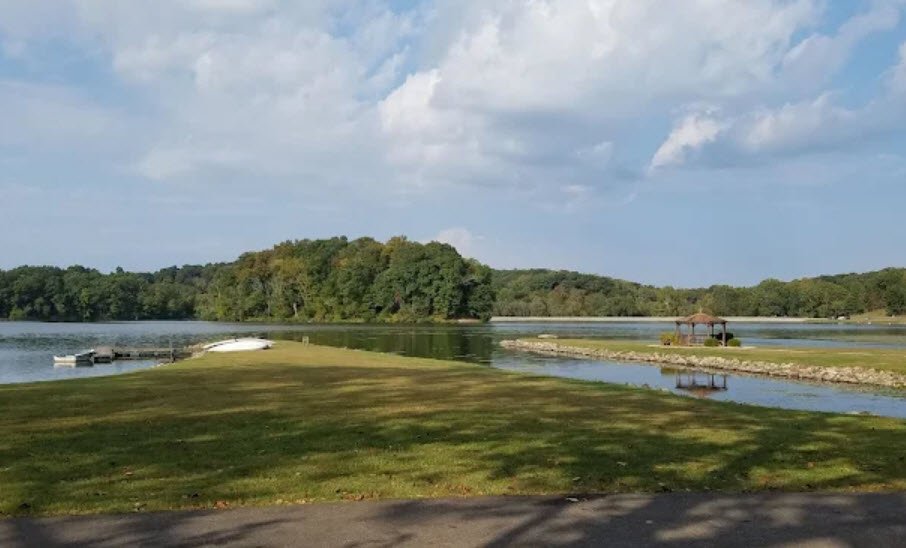 Visitors enjoy boating, fishing for bluegill and bass, two beaches with changing rooms and concessions, a pet swim area, hiking trails, a paved bike path, playground, seven picnic areas with shelters, 66-site campground, and winter ice skating or fishing amid second-growth oak forests, wildflowers, ferns, wild turkeys, woodpeckers, and owls.