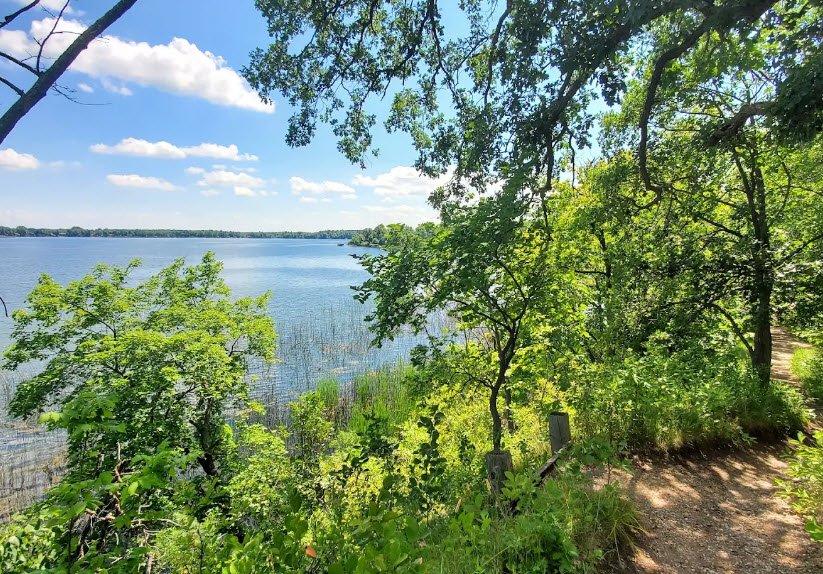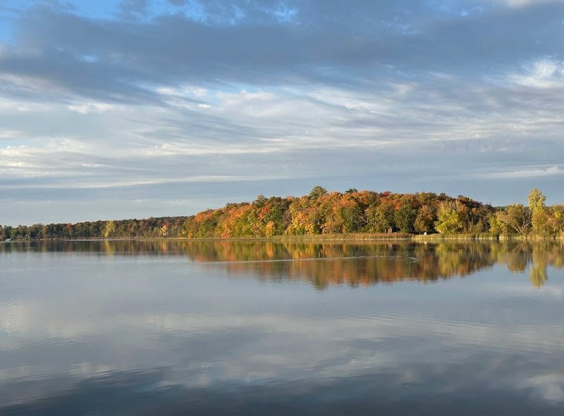 Established in 1937 during New Deal conservation efforts, it features diverse ecosystems like tamarack bogs, marshes, maple-basswood forests, and prairies, home to wildlife including white-tailed deer, foxes, and birds. Visitors enjoy swimming, boating, and fishing on the lake, plus over 14 miles of trails for hiking and mountain biking, historic Civilian Conservation Corps cabins, modern campgrounds, and winter activities like cross-country skiing.