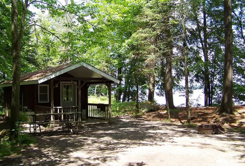 Opened in 1959, it offers extensive camping with 140 tent/RV sites, 35 lean-tos, and two cabins, plus day-use beaches for swimming, canoe/kayak/rowboat rentals, boating, fishing, hiking trails, picnicking, a nature center with interpretive programs, horseshoes, volleyball, and winter access for fishing.