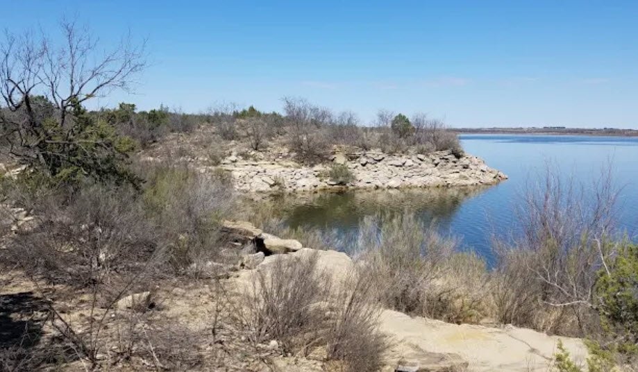 Located in the Rolling Plains with grasslands overtaken by mesquite and prickly pear, it offers fishing for largemouth bass, channel catfish, and sunfish from a pier, boat ramp, and barge, plus swimming, kayaking (rentals available), paddleboarding, hiking trails like Cactus Cut and Roadrunner Loop, birdwatching over 300 species, picnicking, geocaching, and camping in RV sites, cabins, or primitive areas.