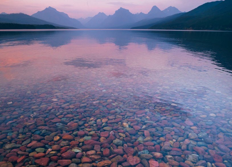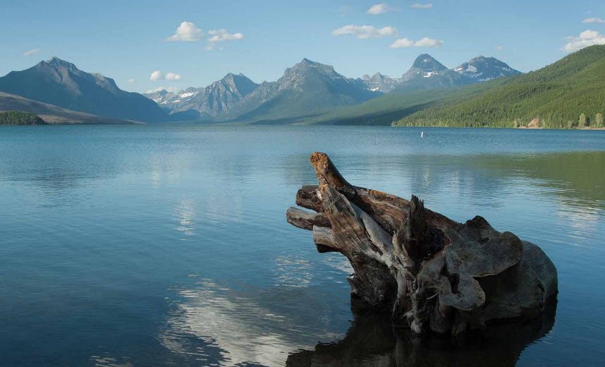 Lake McDonald is the largest lake in Glacier National Park, Montana, stretching about 10 miles long and reaching depths of nearly 500 feet.