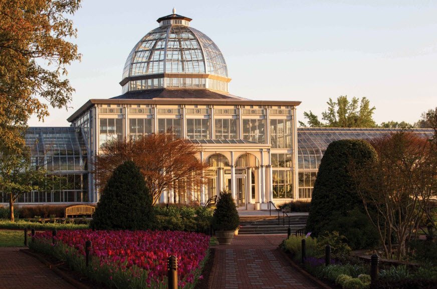 After Grace Arents’ death in 1926, the property was eventually willed to the City of Richmond with the request it be developed into a botanical garden honoring Lewis Ginter. The garden was officially established in 1984 by a community-minded coalition of botanists and horticulturists who restored and expanded the property, now encompassing 82 acres with 15 themed outdoor gardens, a conservatory, a greenhouse, and various educational facilities.