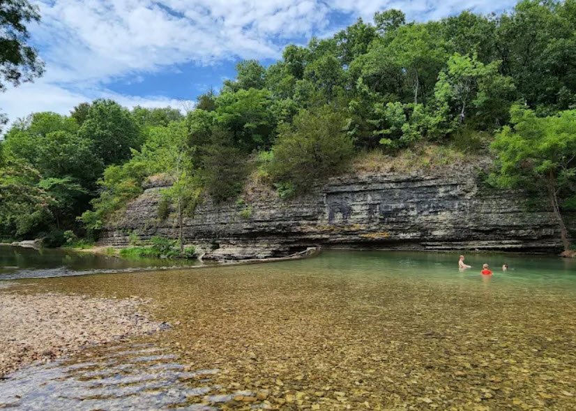 Part of Oklahoma's Grand Lake State Park system, it features a spring-fed creek with shallow, crystal-clear waters ideal for swimming, wading, and family play, plus wooded hills and lake access for boating and fishing species like bass, catfish, and crappie.