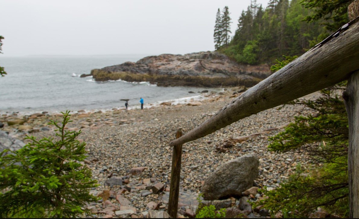 It lies southeast of Otter Point and Otter Cove and is accessible by a stairway from the Park Loop Road, though it is hidden from the road’s view. The beach is covered with smooth, rounded cobblestones formed by glacial activity and powerful ocean waves, creating a unique sound as the stones move with the surf.