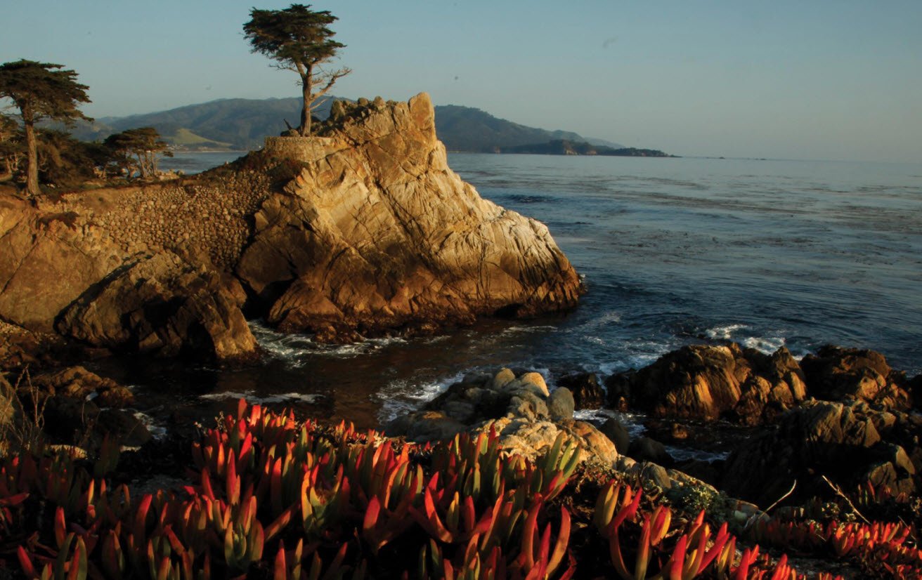 The Lone Cypress is a solitary Monterey cypress tree perched dramatically on a granite headland along the scenic 17-Mile Drive in Pebble Beach, California.