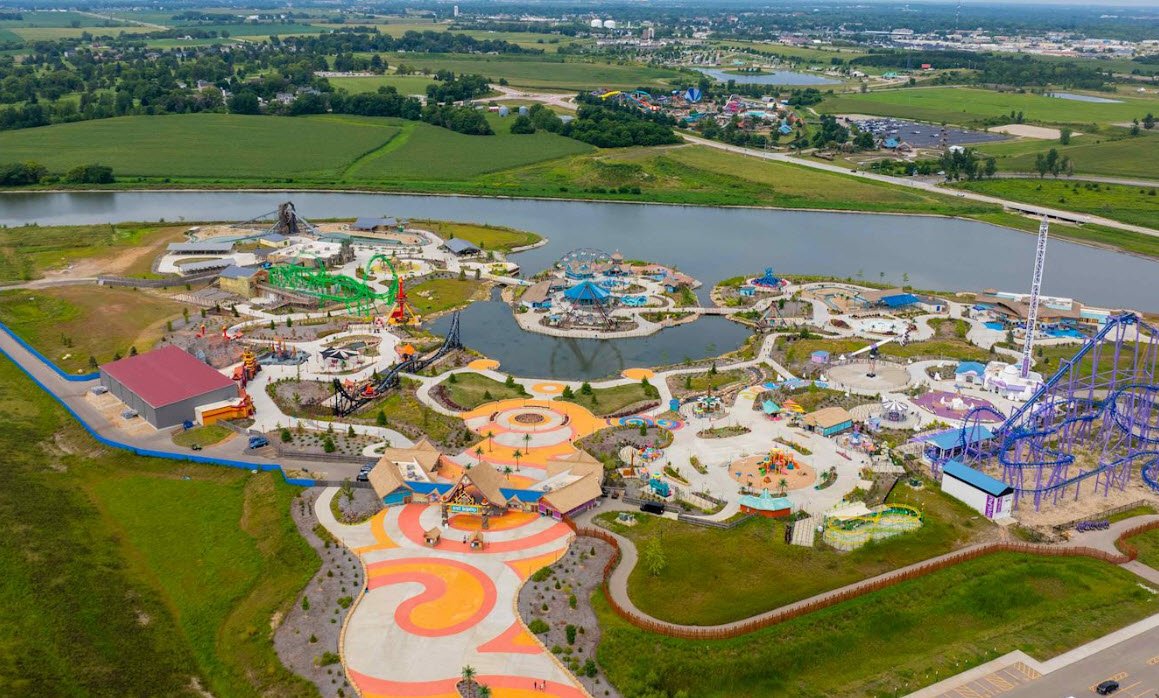 Lost Island WaterPark in Waterloo, Iowa, offers a tropical-themed water park experience featuring 11 waterslides, including one of the first hydro-magnetic water coasters in the country, a relaxing lazy river, wave pool, and four kids’ play areas.