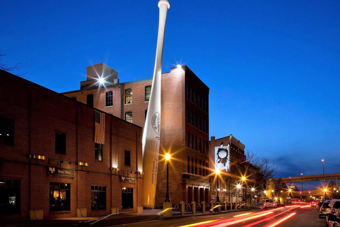 The Louisville Slugger Museum and Factory in Louisville, Kentucky, is a celebrated attraction that tells the story of the famous Louisville Slugger baseball bats, which have been made since 1884.
