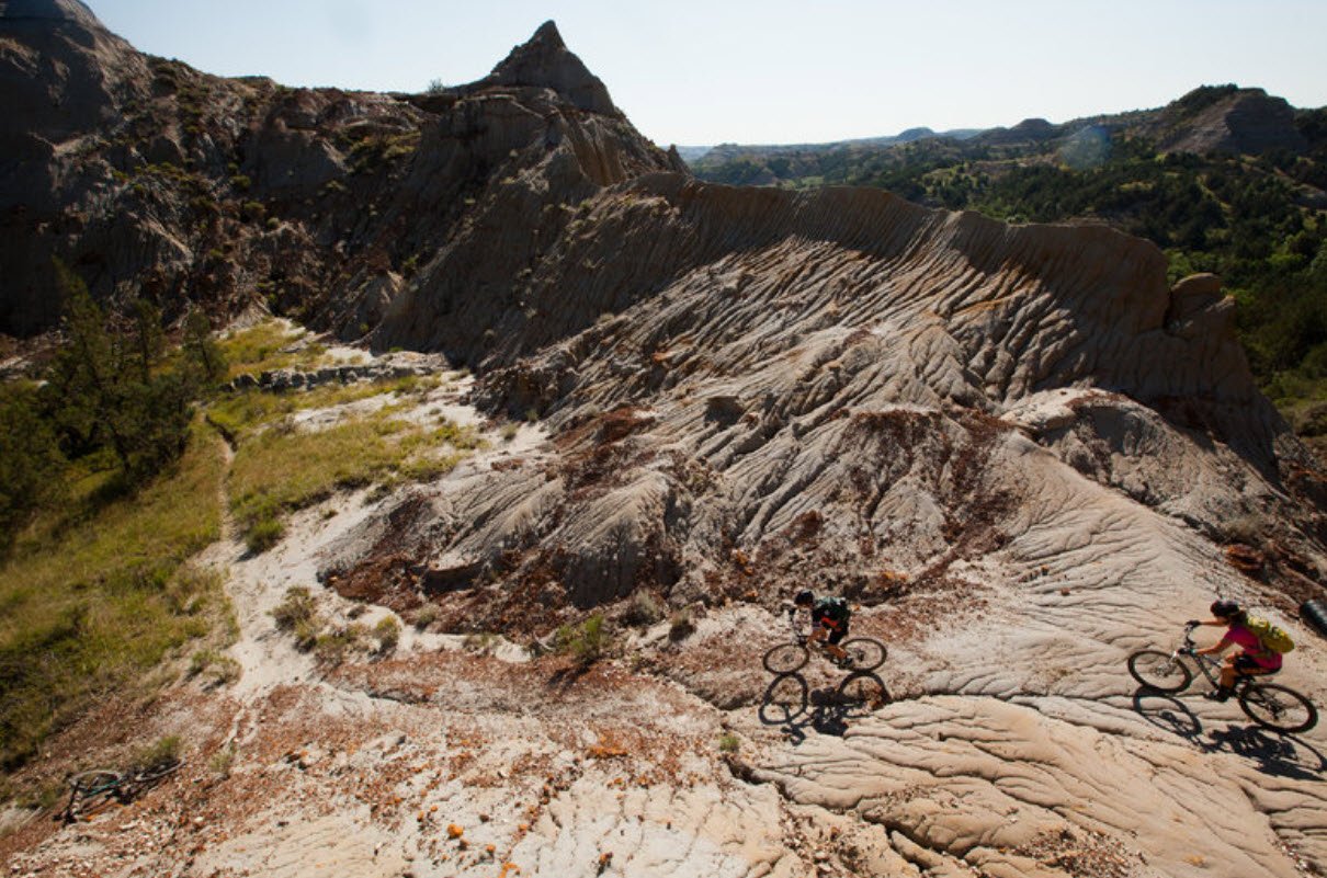 The Maah Daah Hey Trail is a 144-mile non-motorized singletrack trail that winds through the rugged Badlands of southwestern North Dakota, stretching from the Burning Coal Vein Campground south of Medora to the CCC Campground near Watford City.