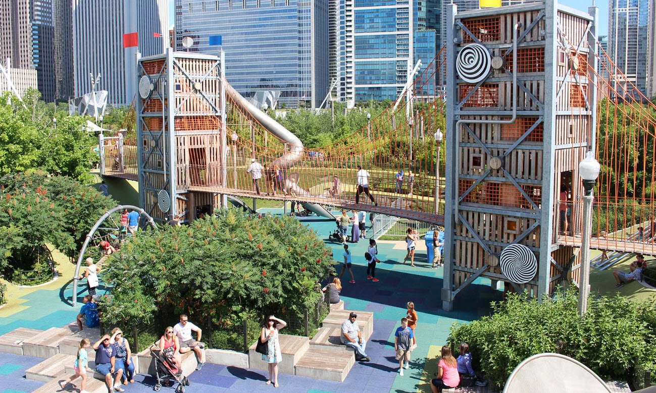 The park is named after Maggie Daley, the city’s former first lady, in honor of her commitment to children and community programs. It offers sweeping views of the Chicago skyline, connects to Millennium Park via the BP Pedestrian Bridge, and serves as a popular destination for families and visitors seeking an engaging outdoor urban experience year-round.