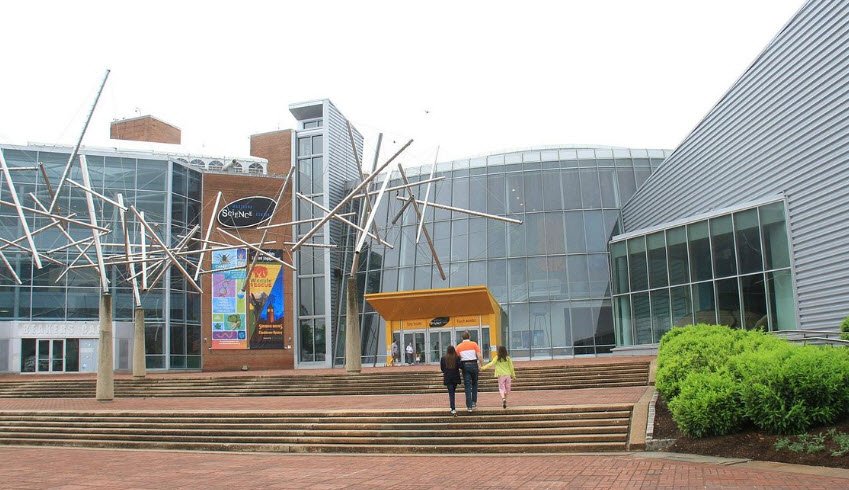 Located in the Inner Harbor area, it offers three floors of exhibits including a planetarium and an observatory. Popular attractions include the Dinosaur Mysteries exhibit featuring life-sized dinosaur models and fossil displays, Newton's Alley with physical science demonstrations, a dedicated Kids Room for young explorers, and Science & Main for physics challenges.