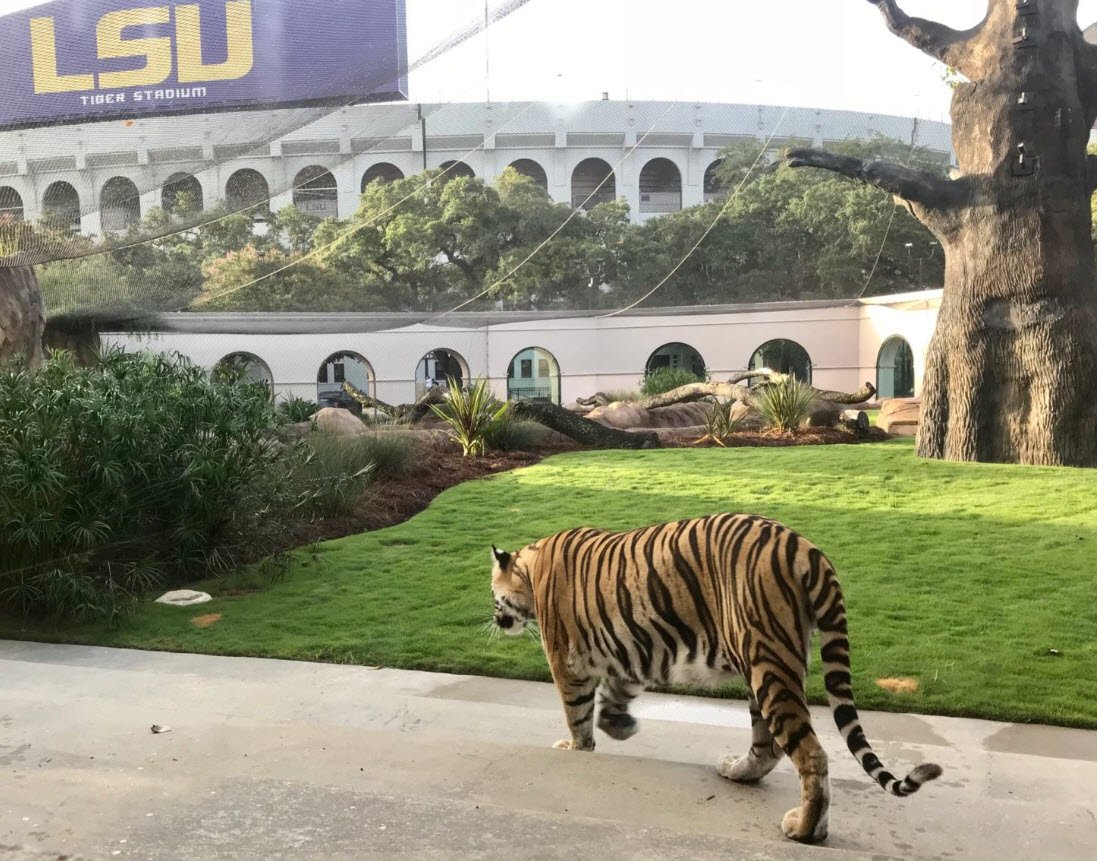 Mike the Tiger's Habitat at Louisiana State University in Baton Rouge is a spacious, state-of-the-art home designed to provide a naturalistic and comfortable environment for LSU’s live Bengal tiger mascot.