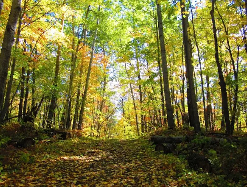Visitors climb a 100-foot fire tower for panoramic views, hike or ski 35 miles of trails through oak-maple woodlands and bogs, swim in a sandy-bottom pond, fish or canoe the rivers and lakes, and explore exhibits at the interpretive center amid abundant wildlife like eagles, loons, and deer.