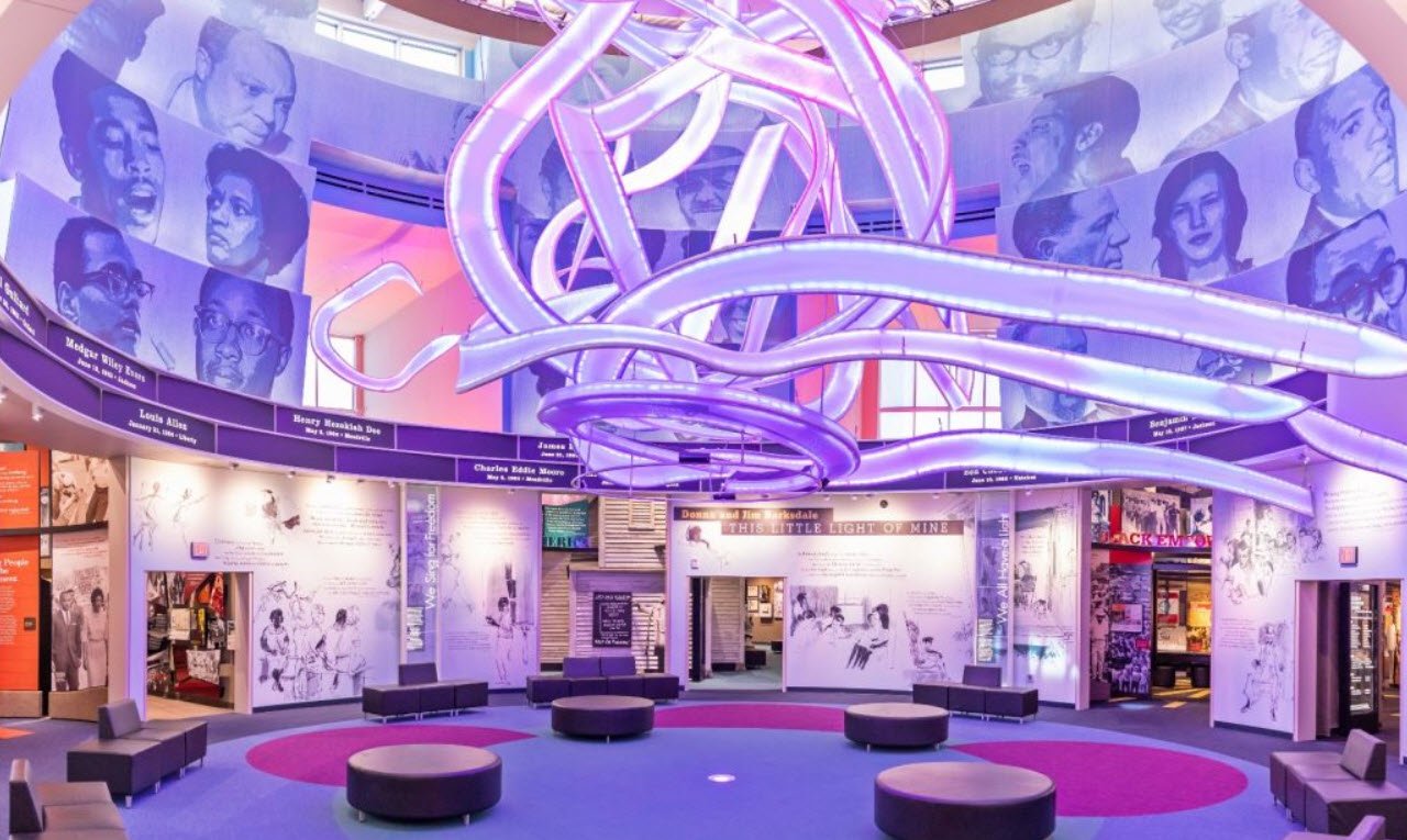 At its center is a dramatic light sculpture tied to the movement’s anthem “This Little Light of Mine,” symbolizing hope and resilience. The final gallery invites visitors to reflect on present-day issues and the ongoing legacy of the movement, making it a deeply educational and emotionally impactful experience.