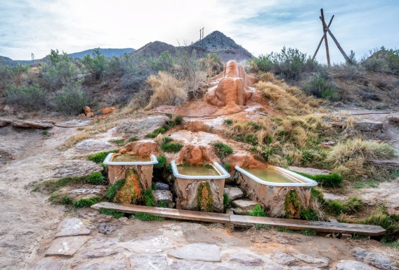 The springs, which flow at about 168°F, have been used for centuries by Native American tribes such as the Ute, Piute, and Shoshone, and later by pioneers traveling the Old Spanish Trail. In 1886, Thomas Cooper homesteaded the land and built the first bathhouse in 1905.