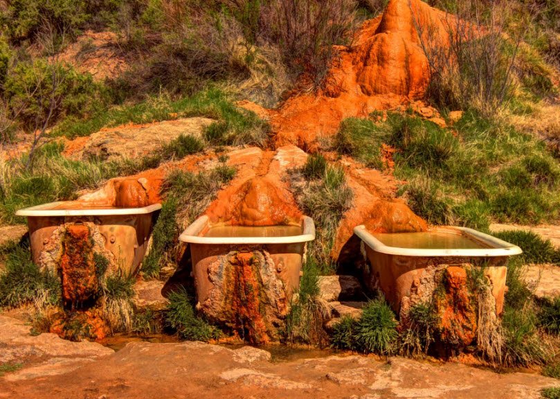 Over the years, the resort expanded to include a dance hall and guest cabins, becoming a popular social destination where people traveled from miles away to soak and enjoy live music. In the 1990s, artist Mike Ginsburg purchased the resort and transformed it by adding unique soaking pools made from antique bathtubs and restored pioneer cabins, creating a blend of rustic charm and artistic spirit.