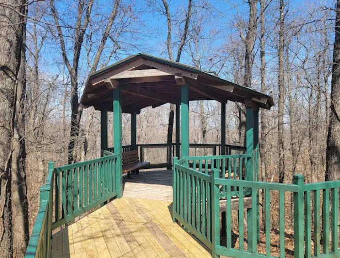 Donated in 1999 by businessman Jim D. Morris, this Missouri Department of Natural Resources day-use park features over 300 plant species unique to the ridge, including massive oaks, red buckeye, ferns in lush hollows, and rare sedges in sand forests, with a 2.25-mile Beech Tree Trail loop showcasing erosion-scarred soil layers, diverse habitats from uplands to bottomlands, an accessible overlook, parking, restrooms, and interpretive panels for hikers exploring this natural oddity.