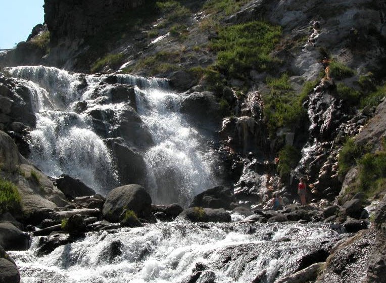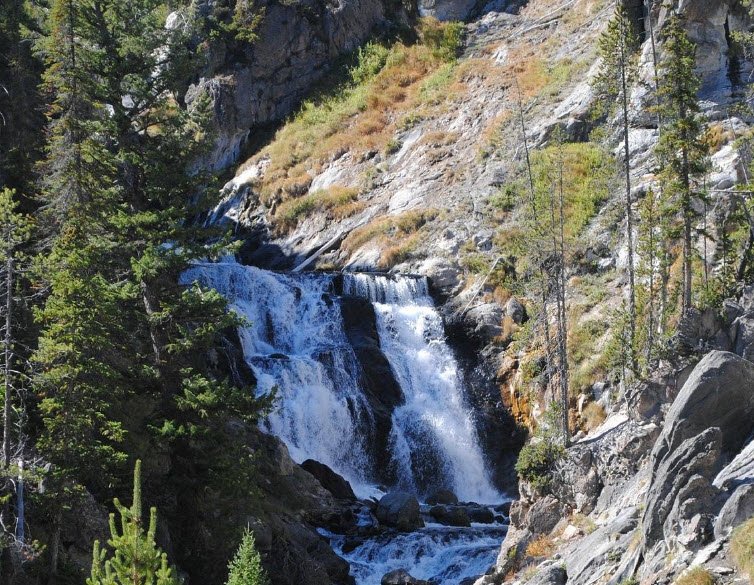 Mystic Falls offers a peaceful, beautiful setting within Yellowstone's iconic geothermal landscape.