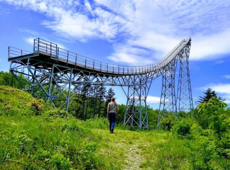 Once the largest ski jump east of the Mississippi and in the world from 1936-1938, it hosted the first U.S. Olympic ski jumping trials in 1938, FIS World Championships in 1939, and national championships through 1972 before closing in 1988 due to disrepair.