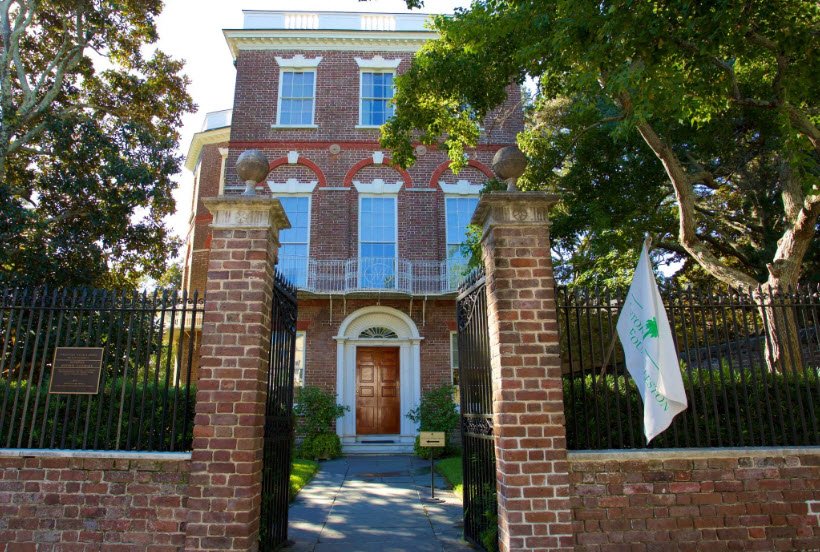 It is renowned for its elegant architecture, particularly a three-story cantilevered elliptical staircase that appears to float without support. The house showcases elaborate plasterwork, geometrically shaped rooms, formal gardens, and decorative arts that reflect the prosperity of Charleston's mercantile elite in the early 19th century. The property also tells the important stories of the approximately eighteen enslaved African people who lived and worked there, with ongoing restoration efforts to highlight their history.