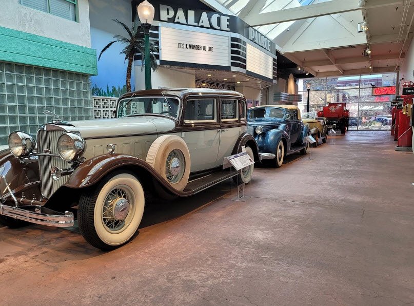 The museum houses over 200 vehicles spanning from the late 19th century to the 1980s, including rare and historically significant cars like the 1907 Thomas Flyer, which won the 1908 New York to Paris race, and celebrity-owned vehicles such as John Wayne's Corvette. The museum is arranged chronologically across four main galleries that showcase the evolution of automobiles and their impact on American culture, technology, and society.