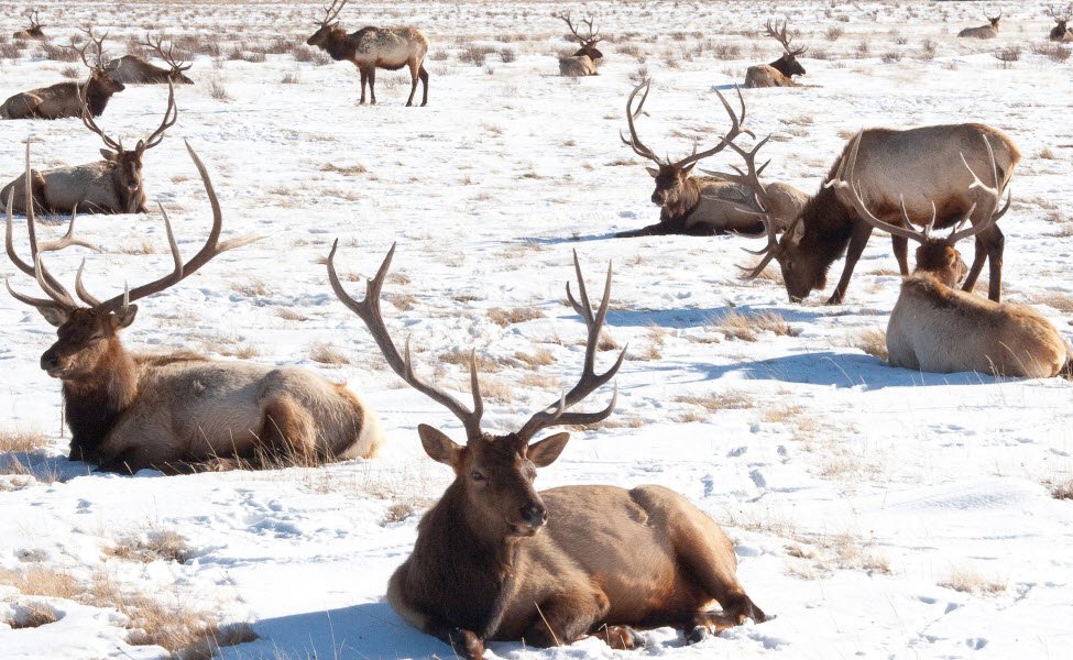 The refuge offers a relatively mild winter climate with lower elevation and less snow, attracting roughly 7,500 elk each year that migrate from surrounding highlands seeking food and shelter. Alongside elk, the refuge supports bison, wolves, pronghorn, mule deer, and over 140 bird species, including trumpeter swans and bald eagles.