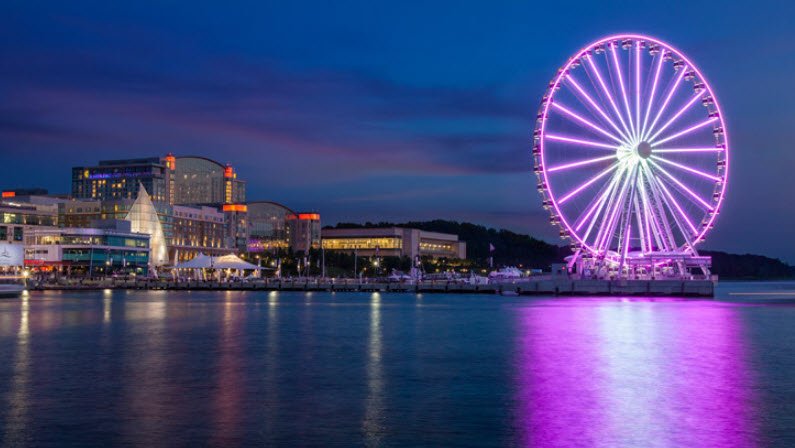National Harbor is a vibrant waterfront community and mixed-use development located in Prince George’s County, Maryland, along the Potomac River near the Woodrow Wilson Bridge.